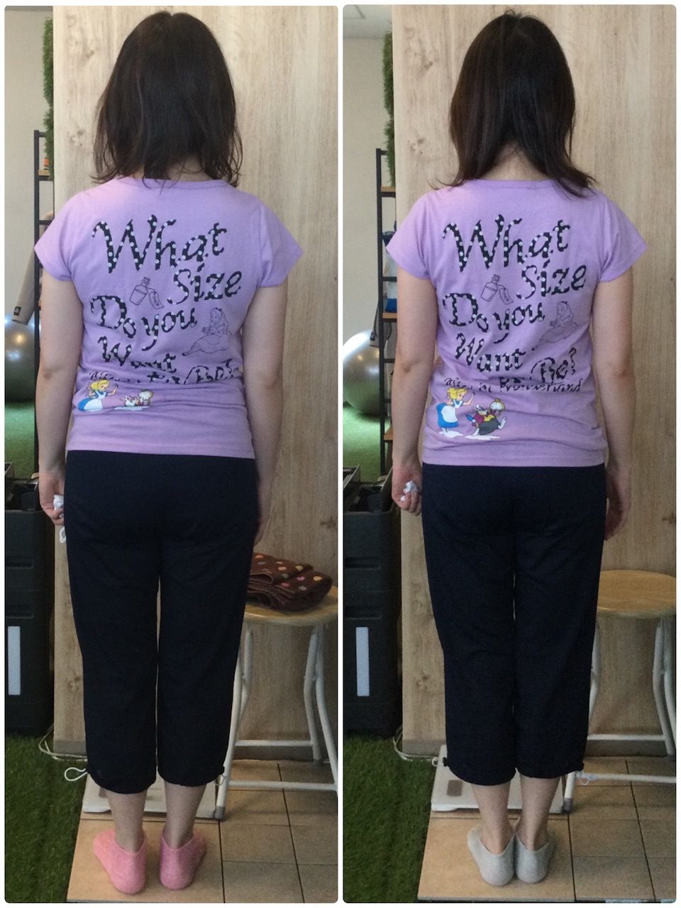 左のビフォーではおしりまわりが膨らんでいましたが、右のアフターではスッキリとボディメイクに成功しています。